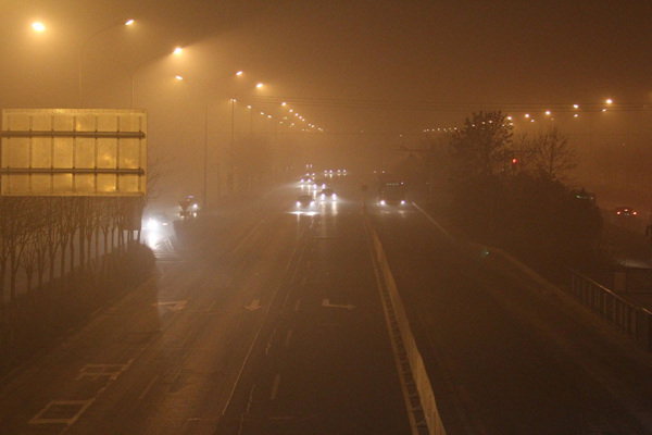 2月28日,北京雾霾袭城,南部地区空气污浊能见度差。