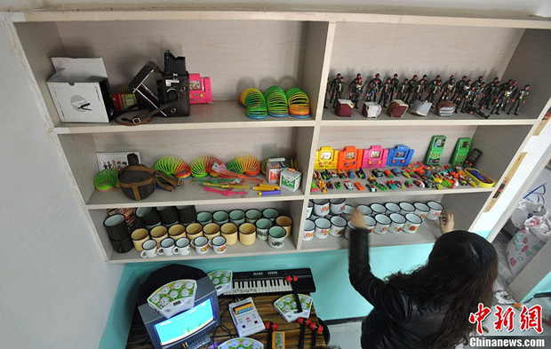 2月21日,重庆一家“80后的课堂”创意火锅店,店里角落放着各种80年代流行的玩具,免费供客人玩耍找回忆。