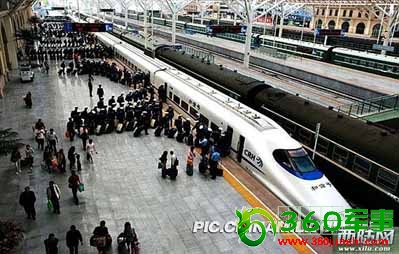 资料图:济南军区部队军人有序登上动车组进行机动
