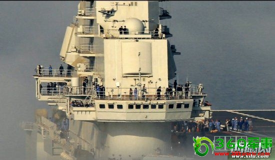瓦良格航母指挥塔部分特写,从外观上看已经安装了雷达装置