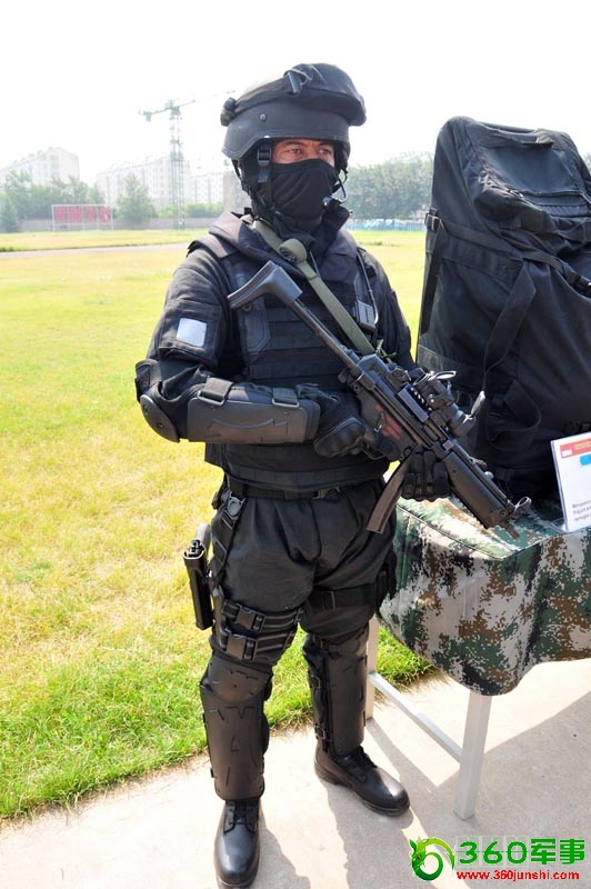 在室外温度接近37摄氏度的情况下,印尼特种部队士兵仍全副武装为代表团做展示